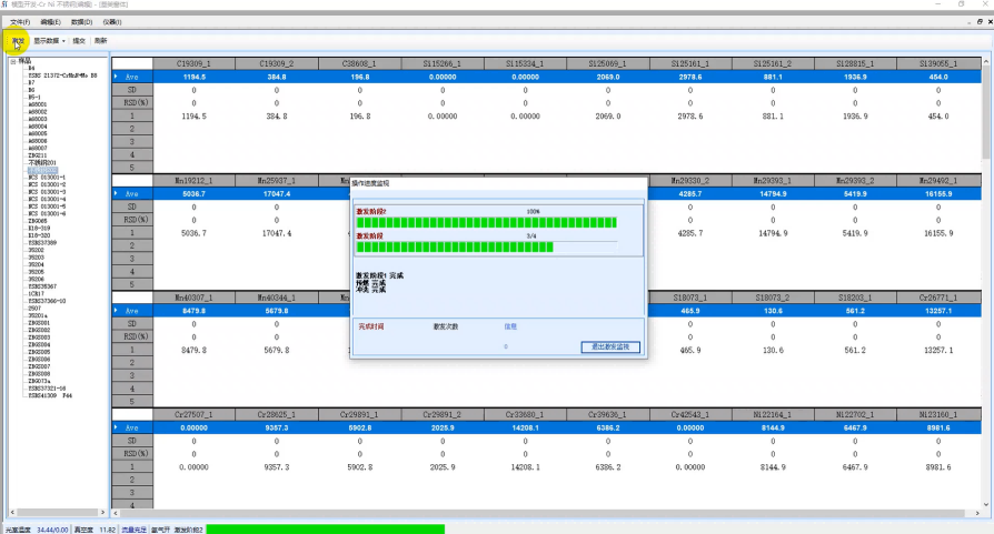 Fourth step: Machine Warm-up ; If the machine has not been excited for a long time, the initial excitation energy is insufficient to fully excite the sample. Therefore, before formal excitation, waste samples need to be continuously excited to warm up the machine and increase the excitation energy.